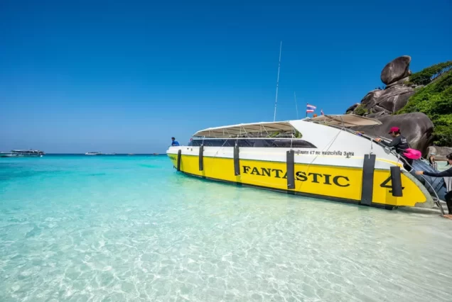 乘快艇从码头出发,前往斯米兰群岛