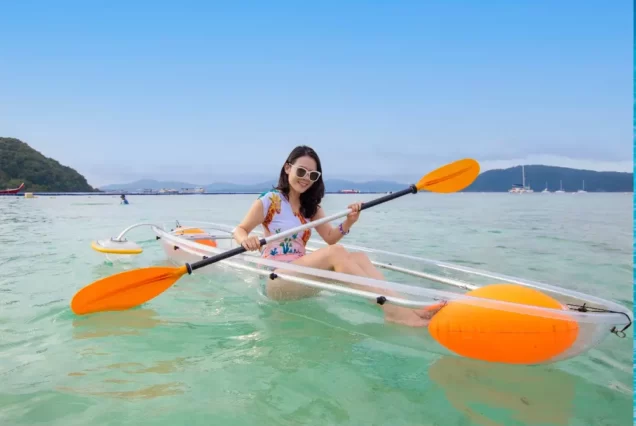 在普吉皮皮岛上,您可以感受到大自然赐予这个地方的宁静与美好。尤其是在夕阳西下时,在柔软细腻的沙滩上漫步或者坐在海边观赏日落会带给您深深的放松和平静感。此外,如果你喜欢探险和冒险精神,你可以参加一些刺激好玩又安全的水上项目,在蓝色大海中尽情挑战自己。